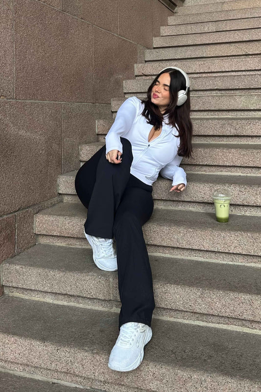 2021-09-16Line Flare Pants are pants that I would wear for everyday or yoga! They are tight while being made of a soft and good fabric! I am 165 cm and these pants are a bit long, but it's fine to fold them up at the waist!